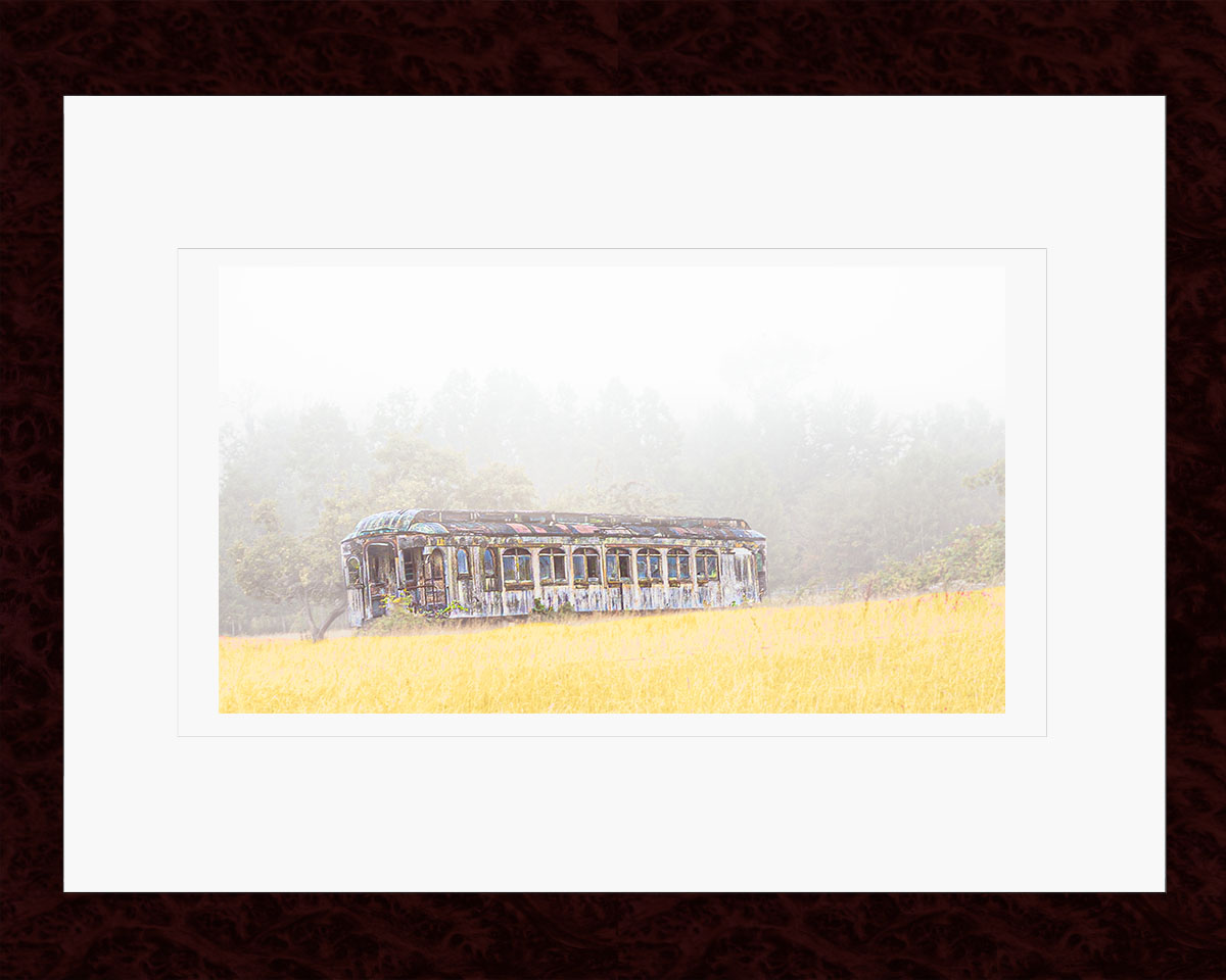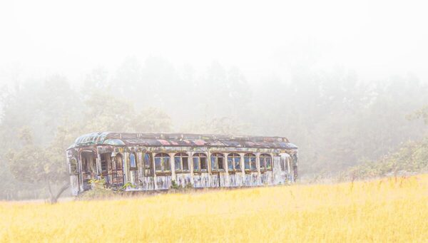 This old trolley appeared out of nowhere in the fog. It was an early morning when I pulled into the Puget Sound Fidalgo Aquatic Preserve near Anacortes, Washington. The fog was thick and it was quite serene. A paved road ran through the preserve and there were almost no other cars. After taking a series of pictures of these verdant marshlands, I drove in further to explore. I spotted what appeared to be an old trolley (or something?) and I took this picture.