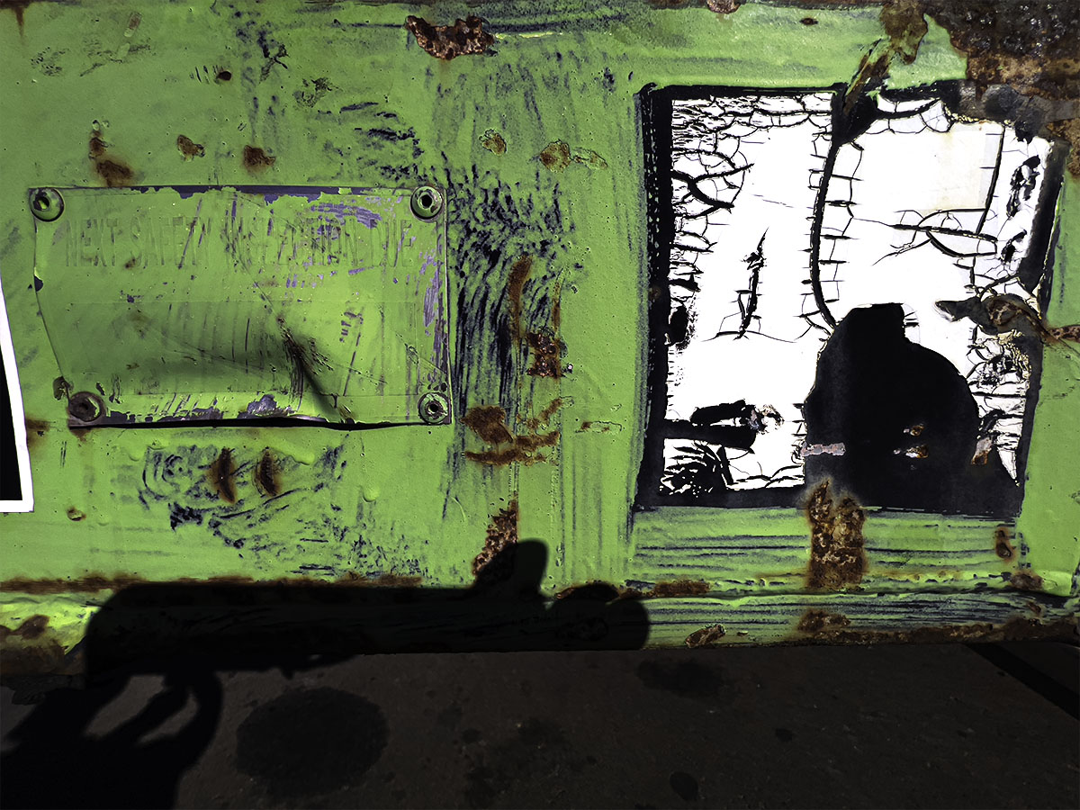 - GreenOn the side of a dumpster.